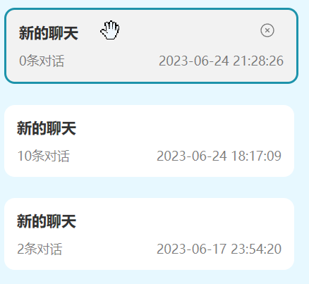 - 鼠标放在会话上会弹出删除按钮,点击可以发起删除请求同时发送事件从会话列表中剔除该会话。