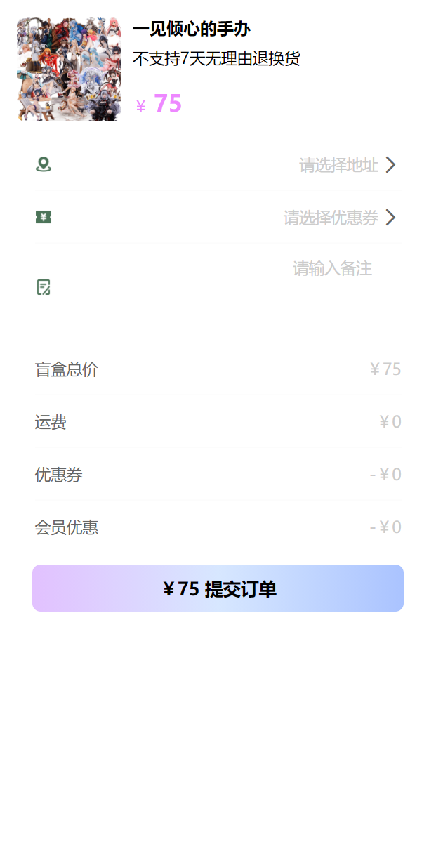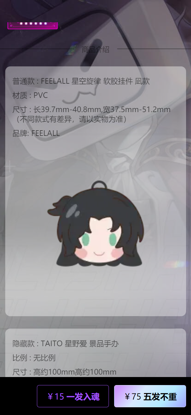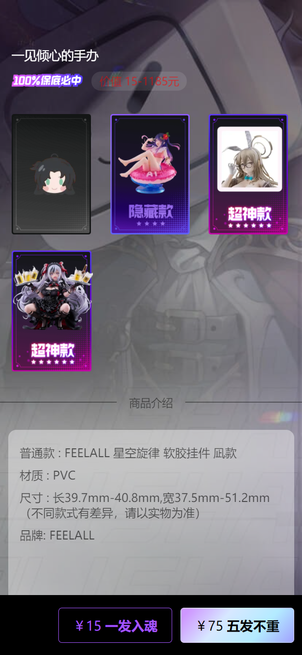 本项目模仿b站的魔力赏盲盒,每个盲盒中可以添加多个商品,支付成功后根据概率随机挑选盲盒内的商品。同时加入了VIP,优惠券,运费计算等功能。